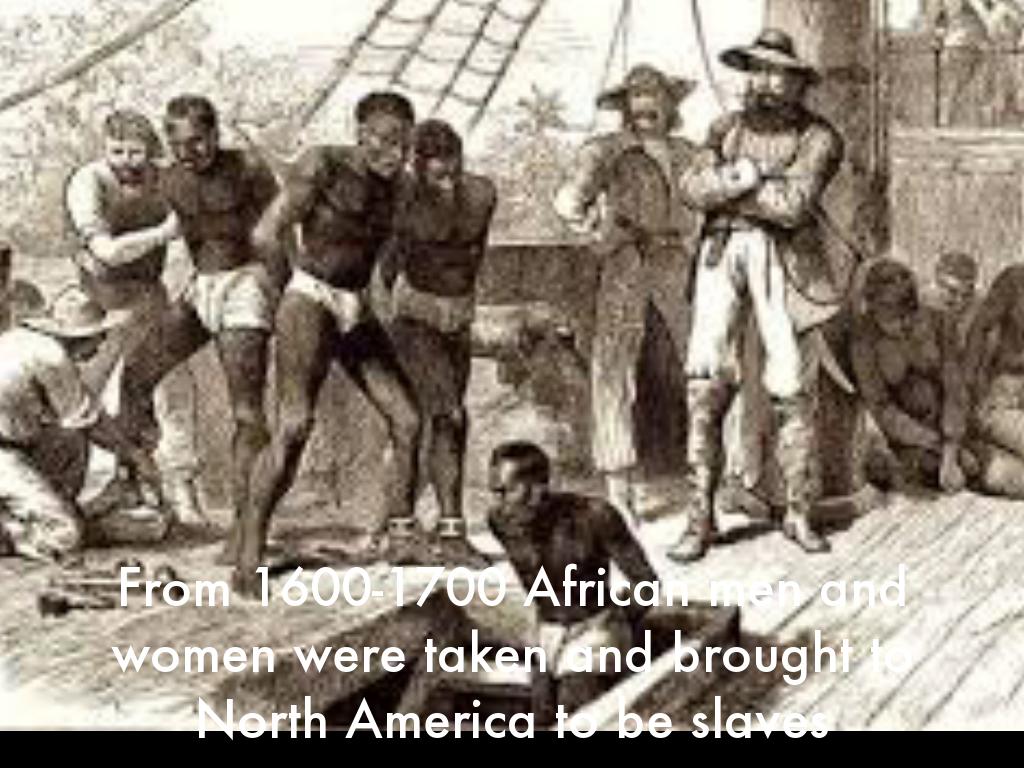 From 1600-1700 African men and women were taken and brought to North America to be slaves