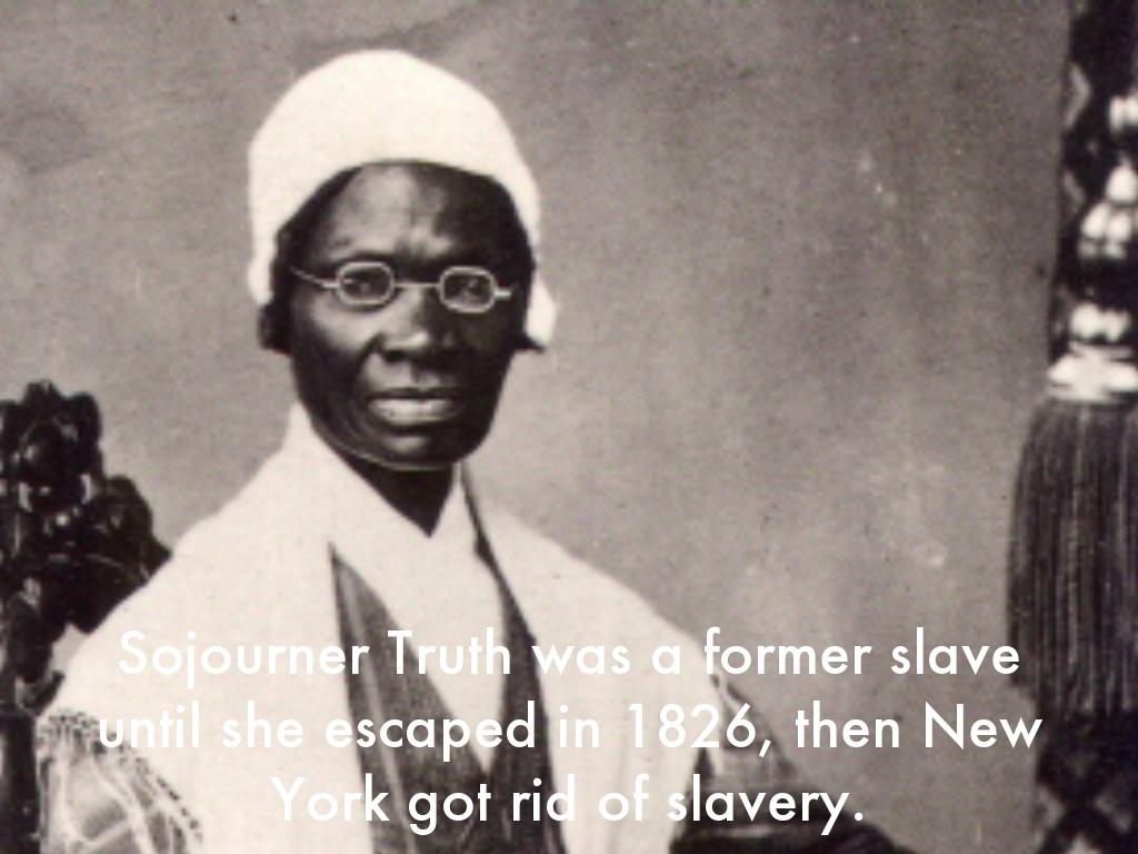 Sojourner Truth was a former slave until she escaped in 1826, then New York got rid of slavery.