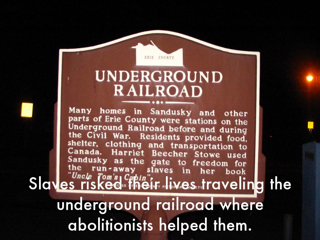 Slaves risked their lives traveling the underground railroad where abolitionists helped them.