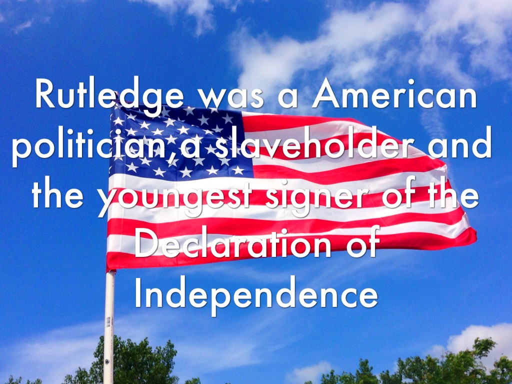 Rutledge was a American politician,a slaveholder and the youngest signer of the Declaration of Independence