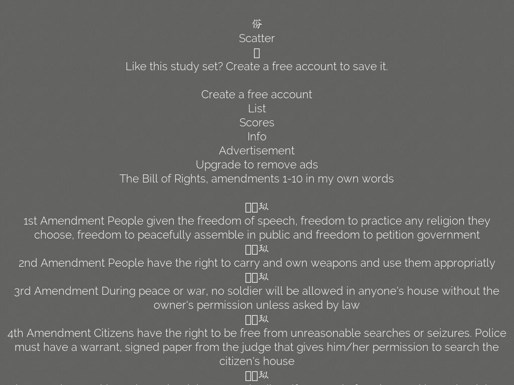 The Bill of Rights, amendments 1-10 in my own words