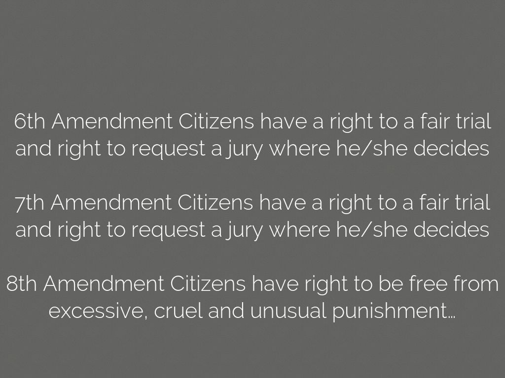 8th Amendment Citizens have right to be free from excessive, cruel and unusual punishment…