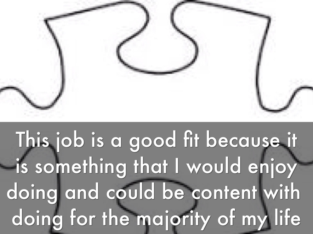This job is a good fit because it is something that I would enjoy doing and could be content with doing for the majority of my life