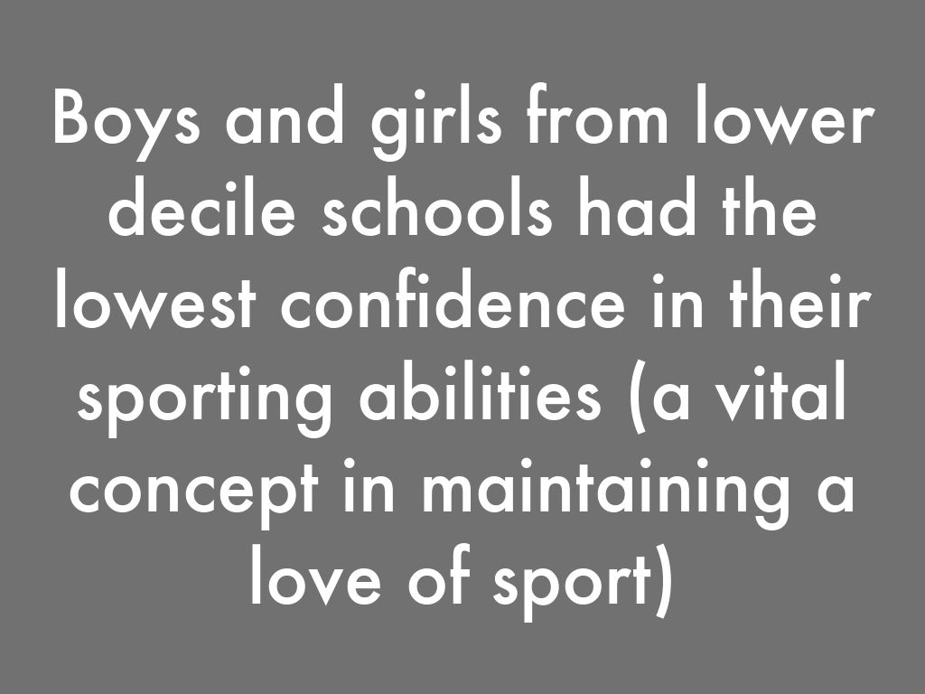 Boys and girls from lower decile schools had the lowest confidence in their sporting abilities (a vital concept in maintaining a love of sport)