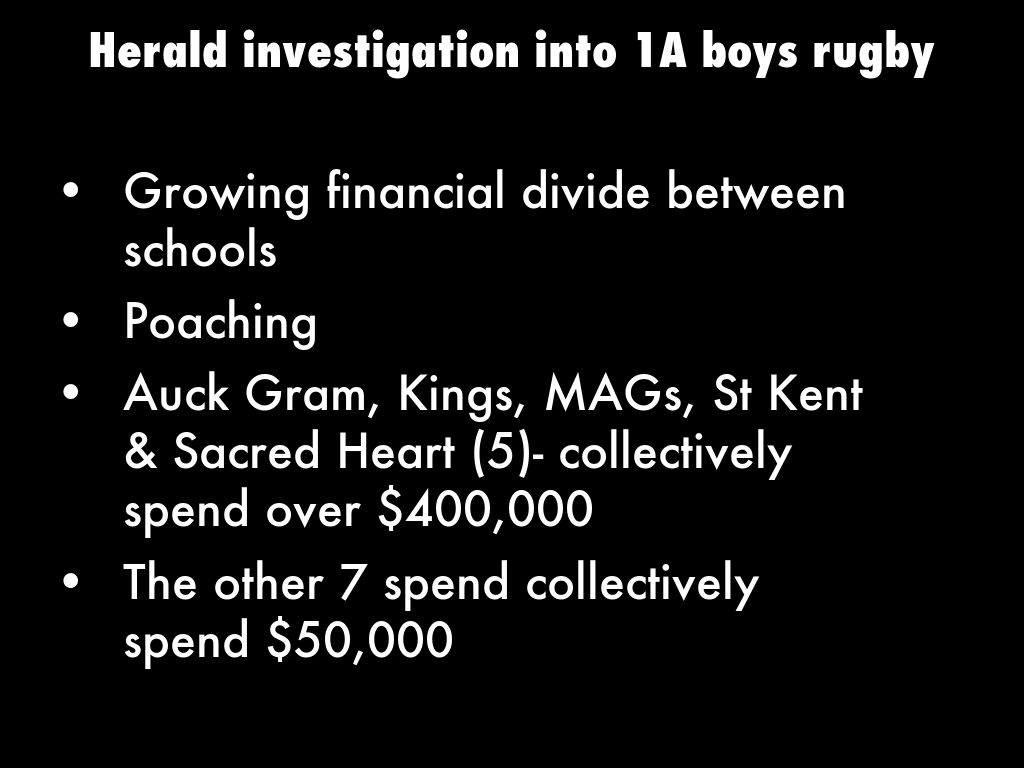 - Auck Gram, Kings, MAGs, St Kent & Sacred Heart (5)- collectively spend over $400,000