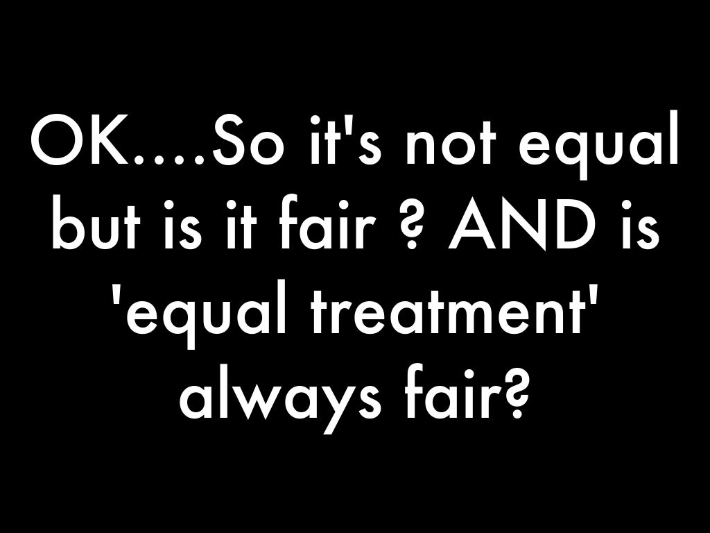 OK....So it's not equal but is it fair ? AND is 'equal treatment' always fair?