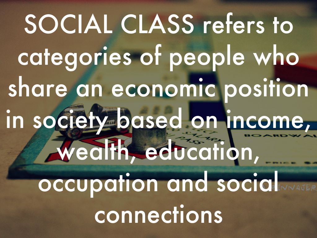 SOCIAL CLASS refers to categories of people who share an economic position in society based on income, wealth, education, occupation and social connections