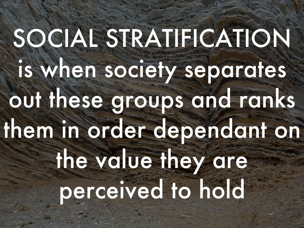 SOCIAL STRATIFICATION is when society separates out these groups and ranks them in order dependant on the value they are perceived to hold
