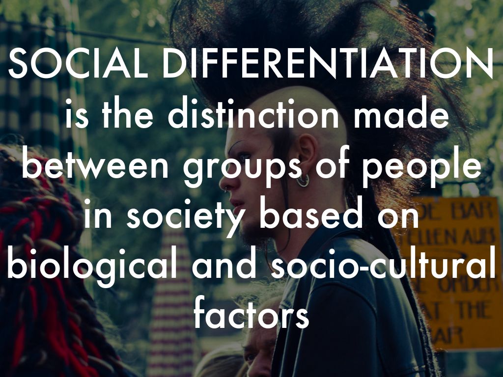 SOCIAL DIFFERENTIATION is the distinction made between groups of people in society based on biological and socio-cultural factors