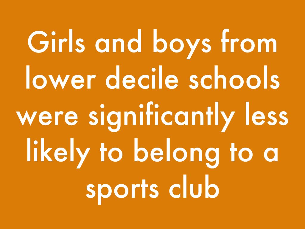 Girls and boys from lower decile schools were significantly less likely to belong to a sports club