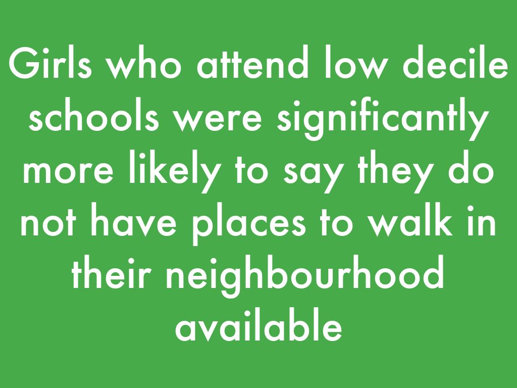 Girls who attend low decile schools were significantly more likely to say they do not have places to walk in their neighbourhood available