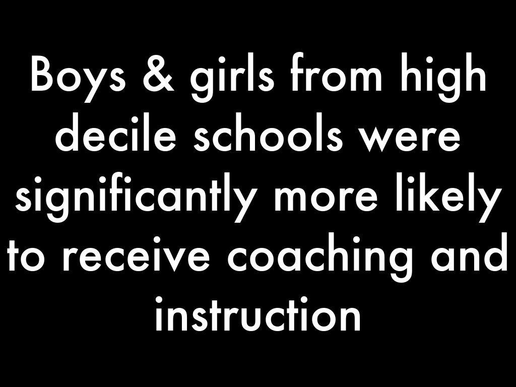 Boys & girls from high decile schools were significantly more likely to receive coaching and instruction