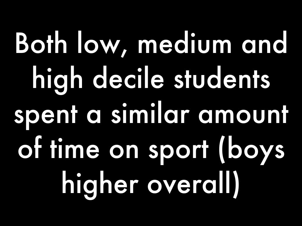 Both low, medium and high decile students spent a similar amount of time on sport (boys higher overall)