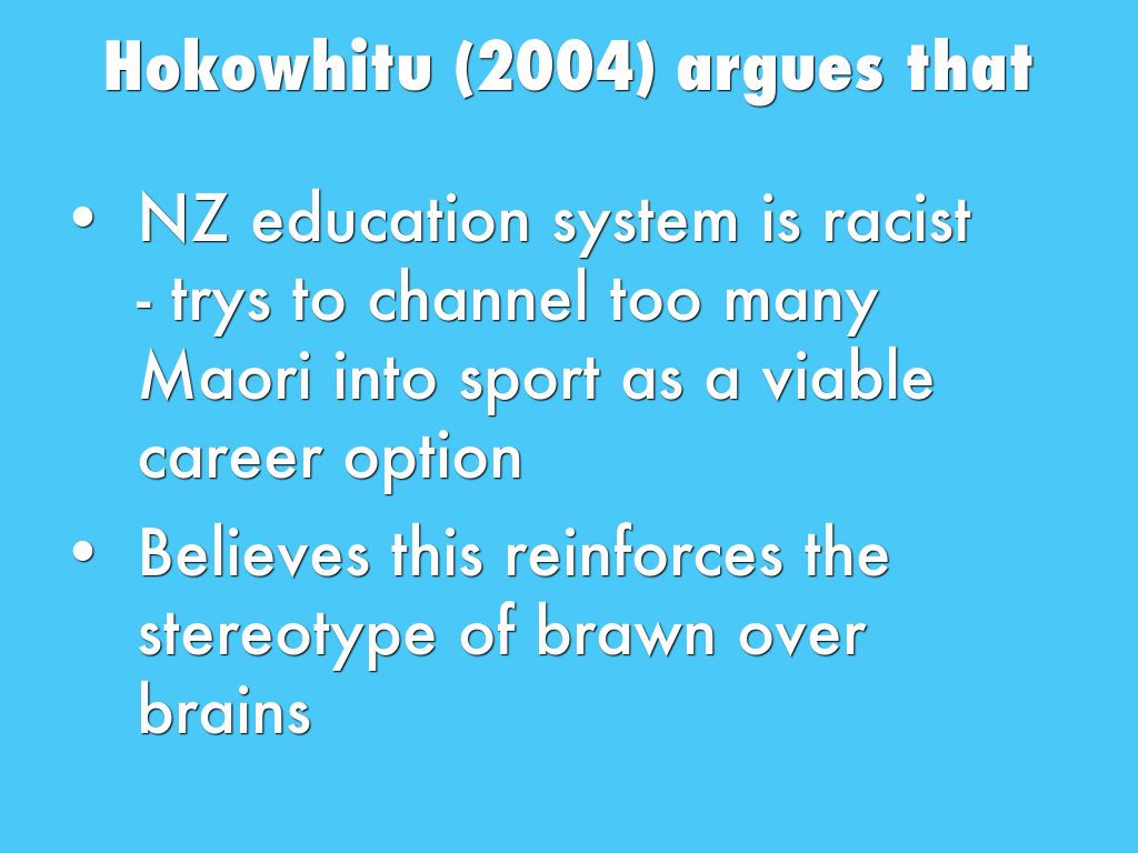 - NZ education system is racist - trys to channel too many Maori into sport as a viable career option