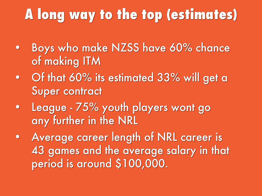 - Average career length of NRL career is 43 games and the average salary in that period is around $100,000.