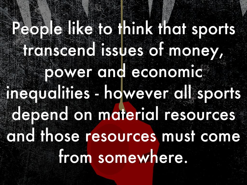 People like to think that sports transcend issues of money, power and economic inequalities - however all sports depend on material resources and those resources must come from somewhere.