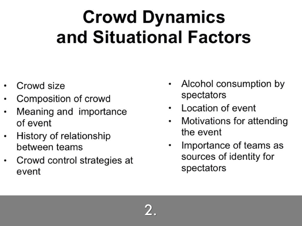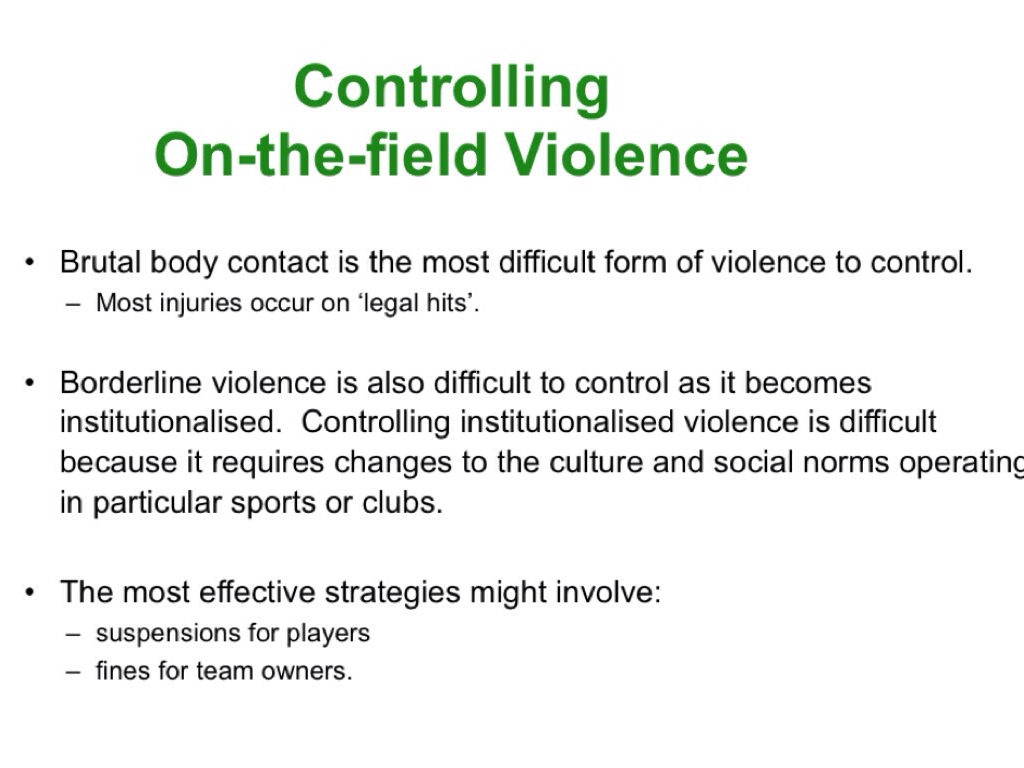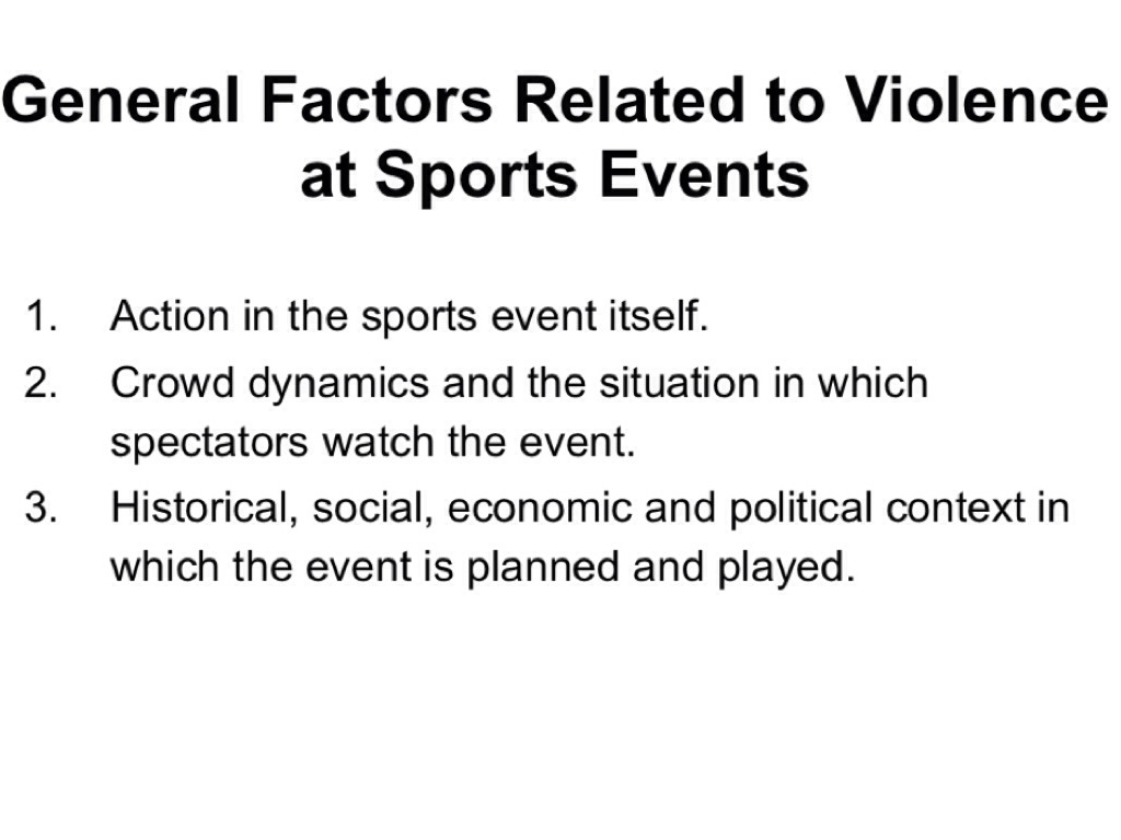 1. If spectators perceive players actions as violent, they are more likely to engage in violent acts (Smith, 1983)