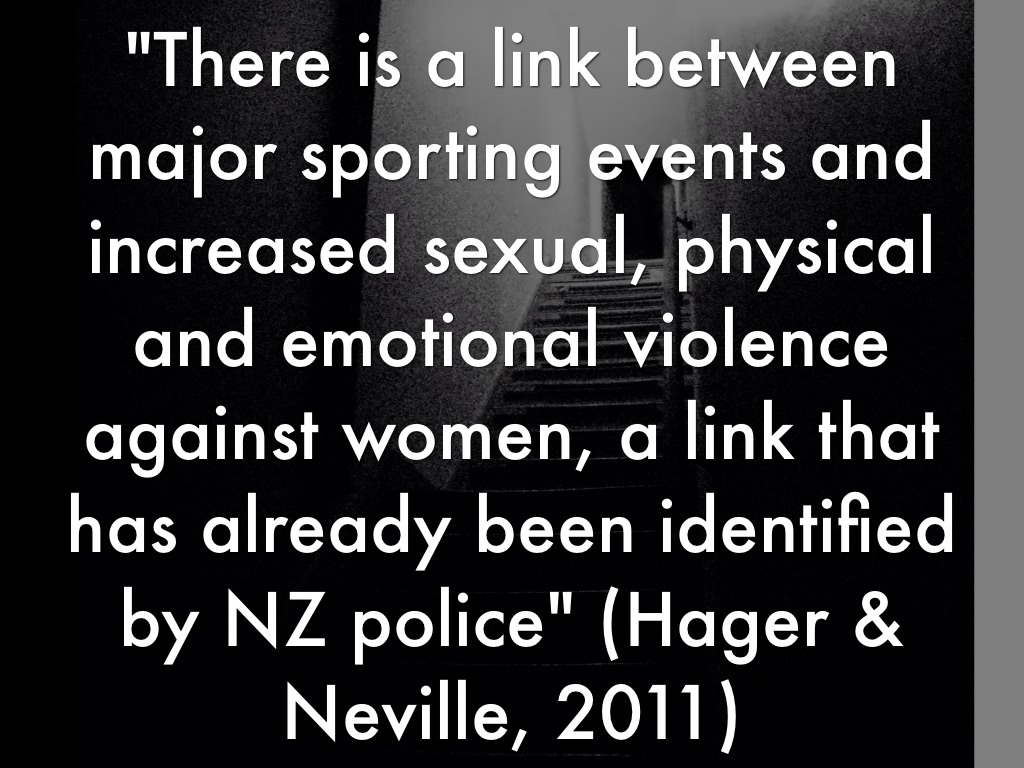 "There is a link between major sporting events and increased sexual, physical and emotional violence against women, a link that has already been identified by NZ police" (Hager & Neville, 2011)