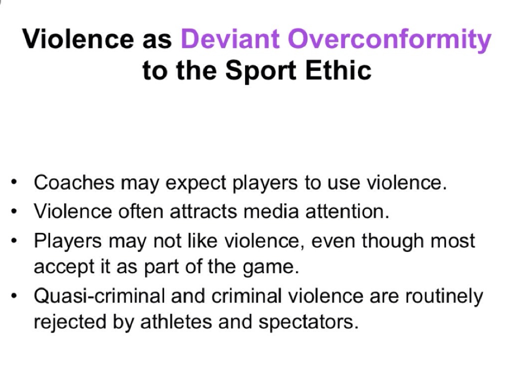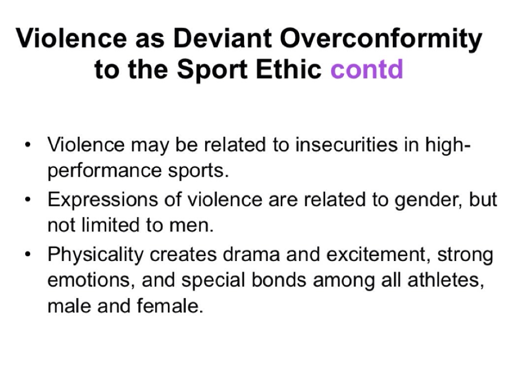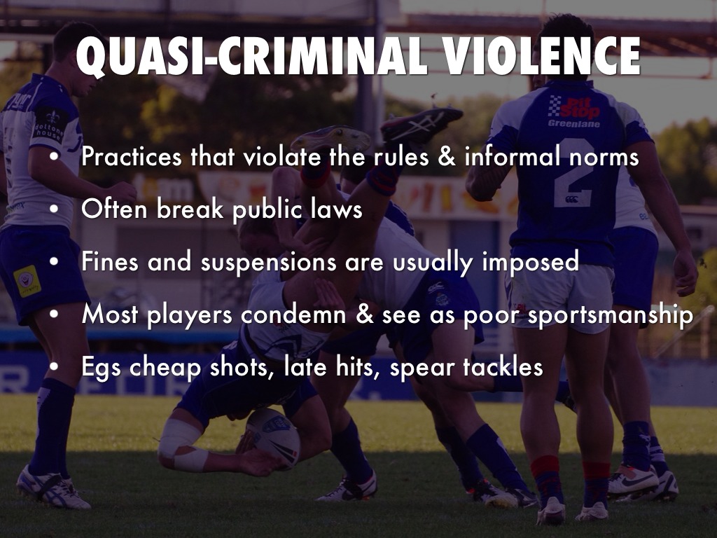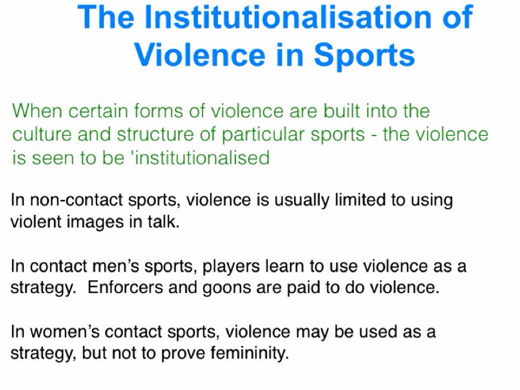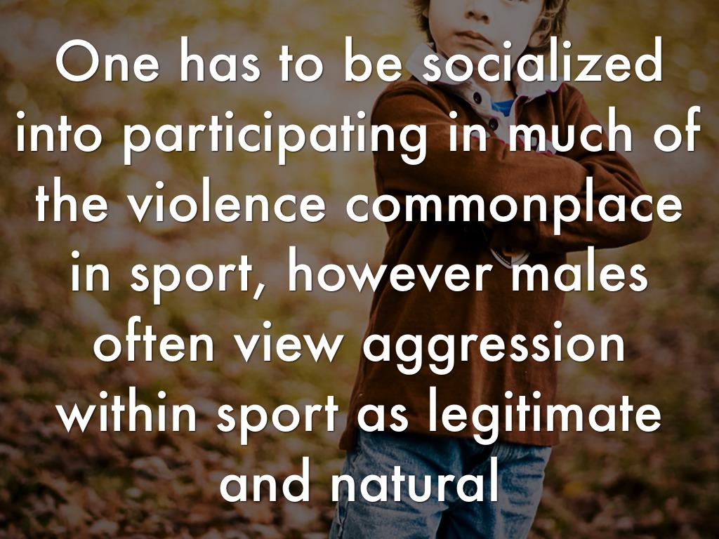 One has to be socialized into participating in much of the violence commonplace in sport, however males often view aggression within sport as legitimate and natural
