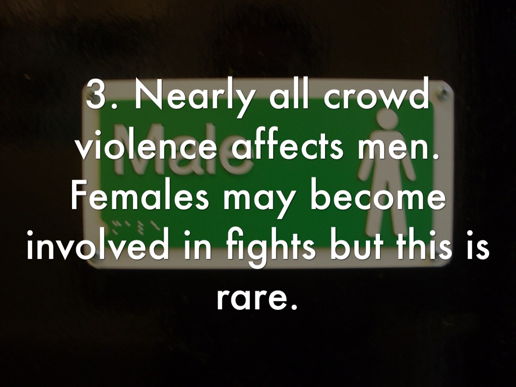 3. Nearly all crowd violence affects men. Females may become involved in fights but this is rare.