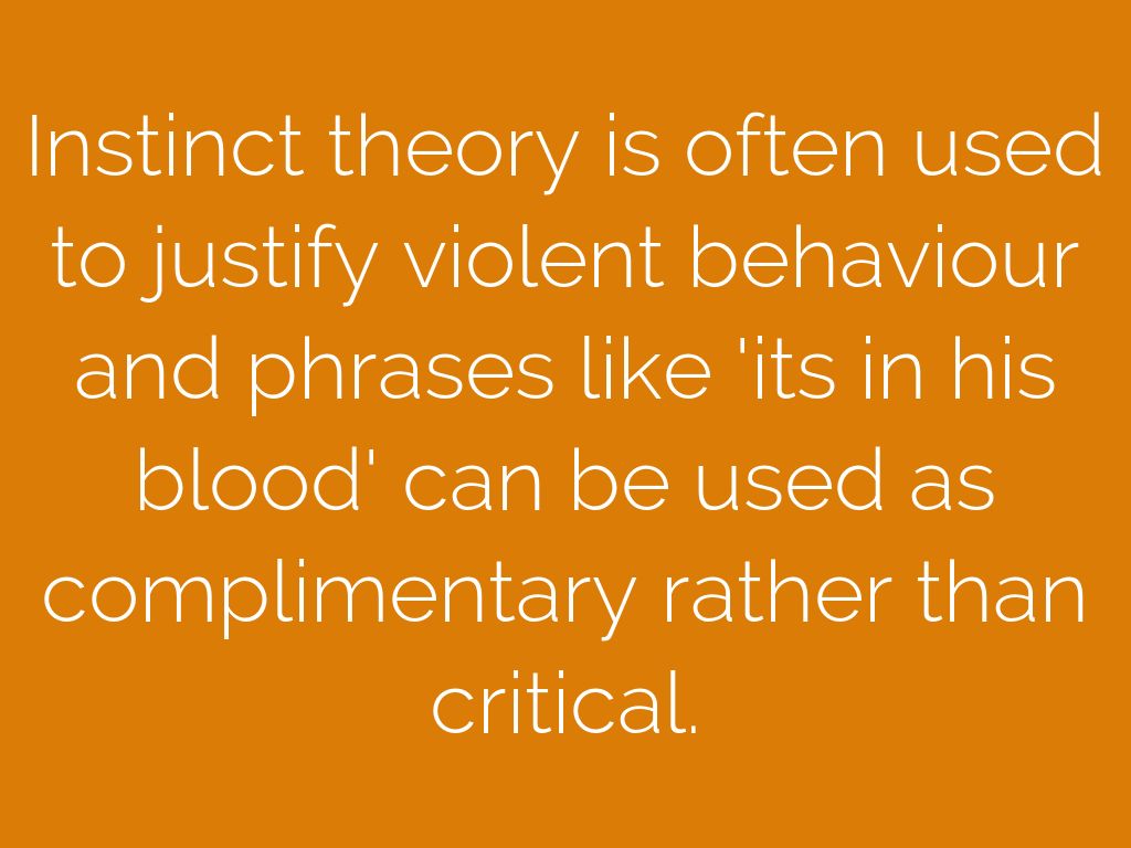 Instinct theory is often used to justify violent behaviour and phrases like 'its in his blood' can be used as complimentary rather than critical.