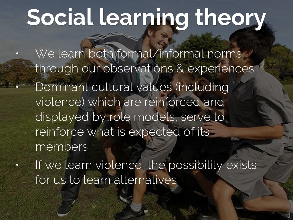 - Dominant cultural values (including violence) which are reinforced and displayed by role models, serve to reinforce what is expected of its members