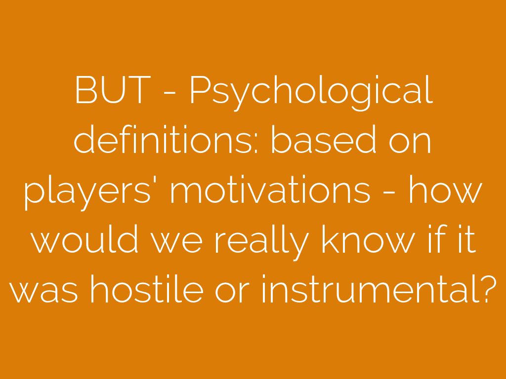 BUT - Psychological definitions: based on players' motivations - how would we really know if it was hostile or instrumental?