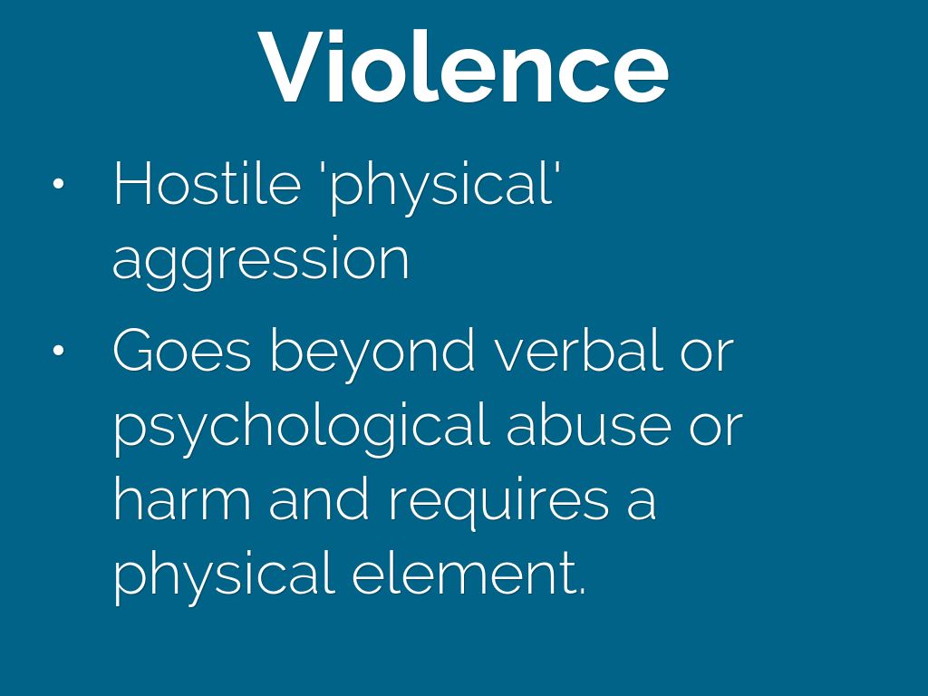 - Physical or verbal behaviour intended to physically or psychologically harm