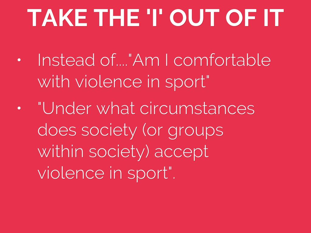 - Instead of...."Am I comfortable with violence in sport"