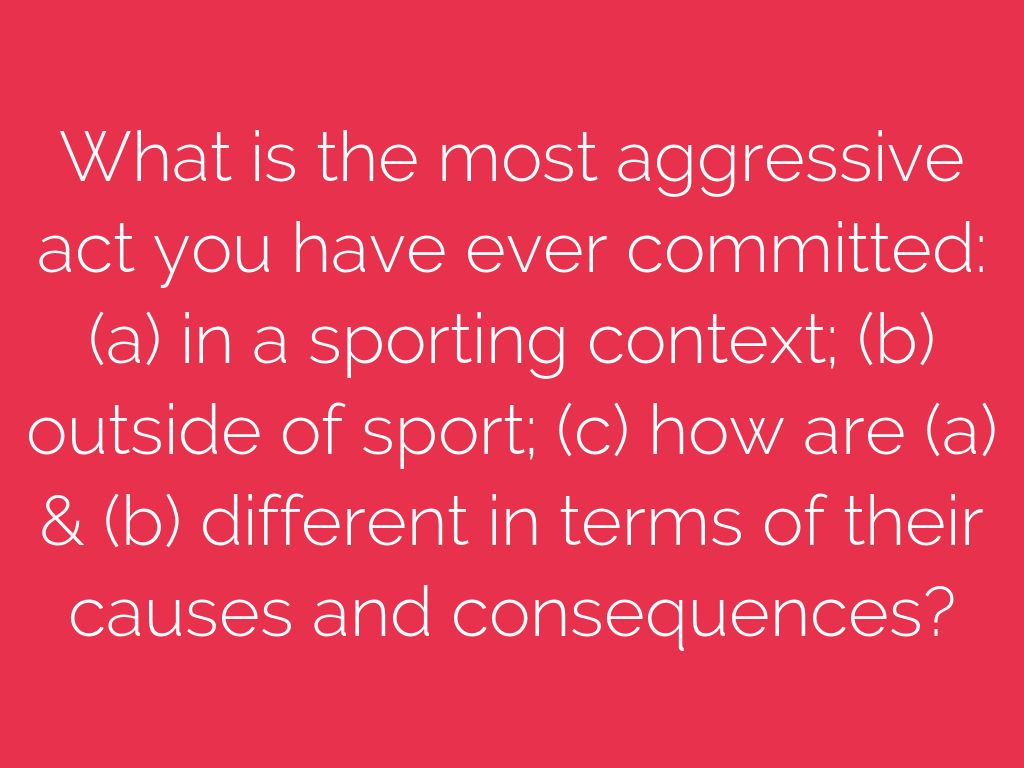 What is the most aggressive act you have ever committed: (a) in a sporting context; (b) outside of sport; (c) how are (a) & (b) different in terms of their causes and consequences?