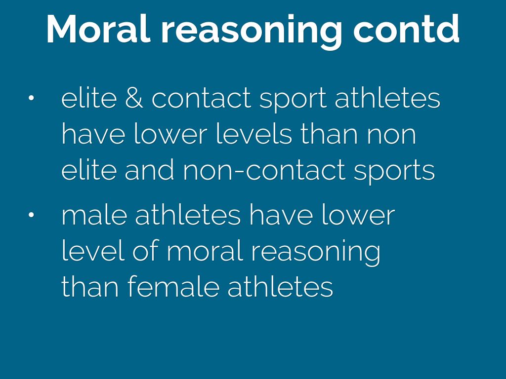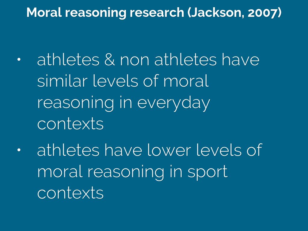 - athletes have lower levels of moral reasoning in sport contexts