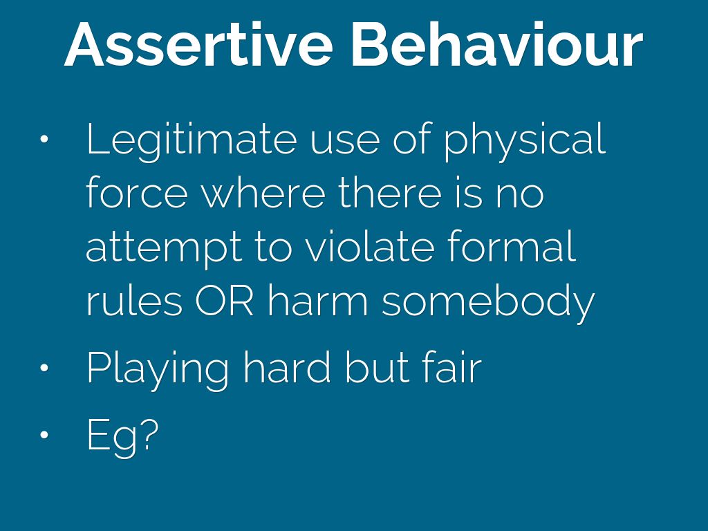 - Legitimate use of physical force where there is no attempt to violate formal rules OR harm somebody