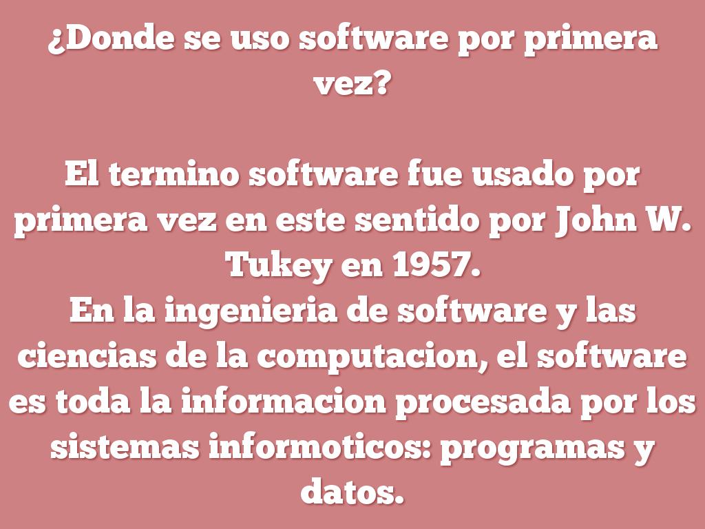 El termino software fue usado por primera vez en este sentido por John W. Tukey en 1957.