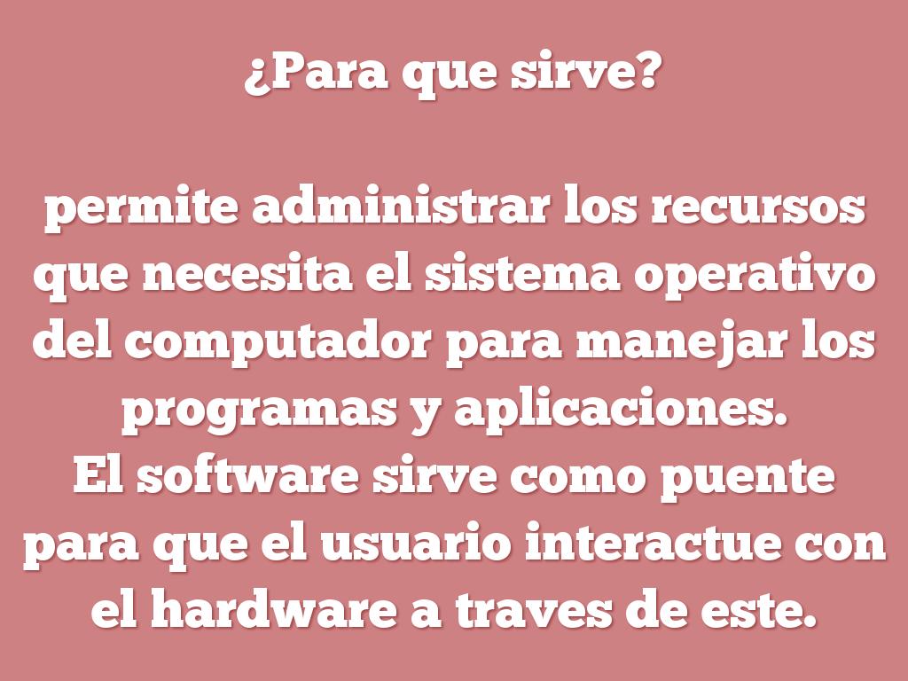 El software sirve como puente para que el usuario interactue con el hardware a traves de este.