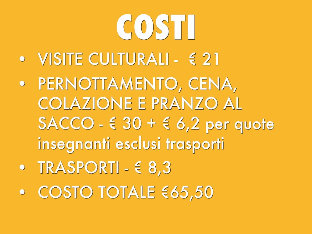 PERNOTTAMENTO, CENA, COLAZIONE E PRANZO AL SACCO - € 30 + € 6,2 per quote insegnanti esclusi trasporti