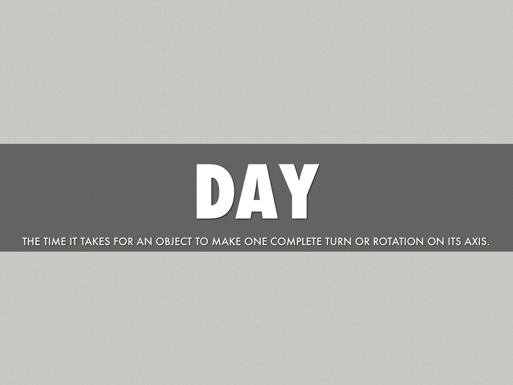 THE TIME IT TAKES FOR AN OBJECT TO MAKE ONE COMPLETE TURN OR ROTATION ON ITS AXIS.
