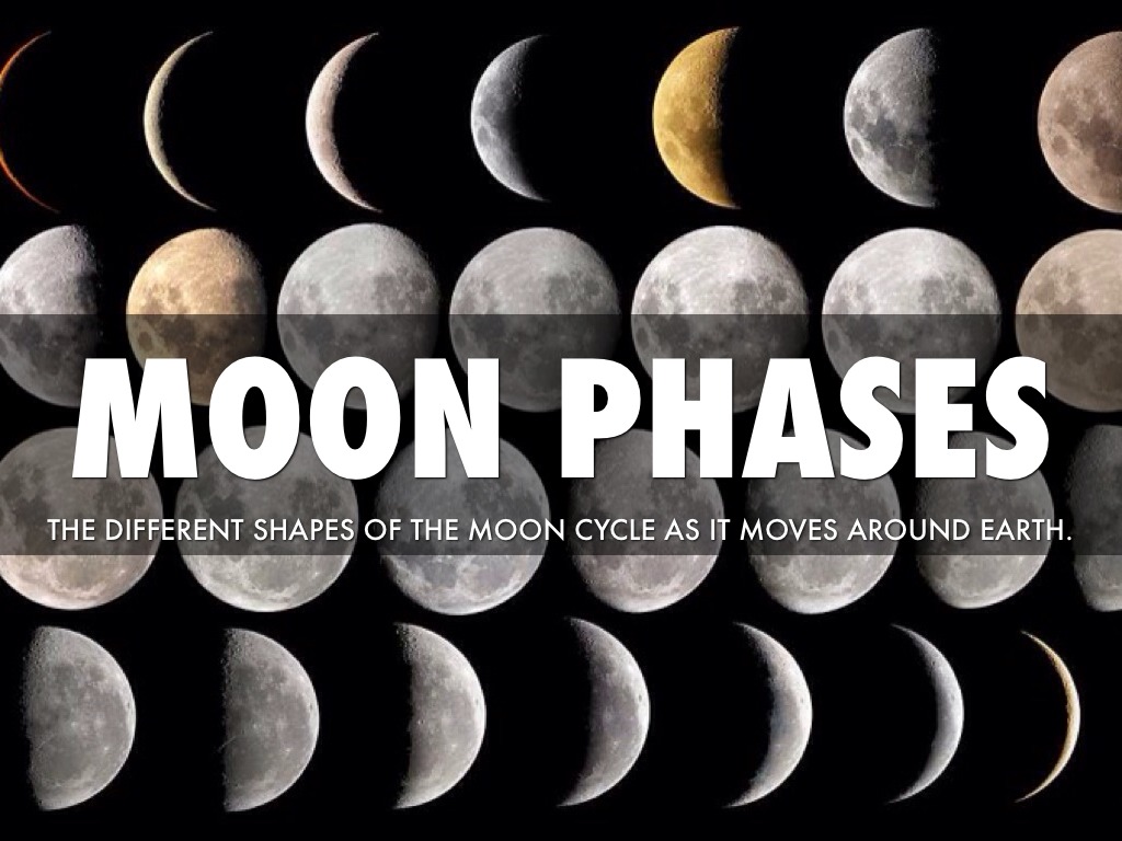 THE DIFFERENT SHAPES OF THE MOON CYCLE AS IT MOVES AROUND EARTH.