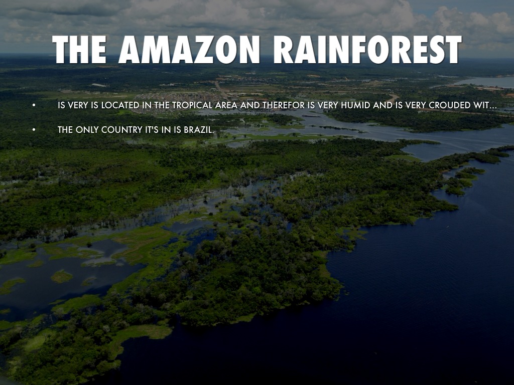 • IS VERY IS LOCATED IN THE TROPICAL AREA AND THEREFOR IS VERY HUMID AND IS VERY CROUDED WITH UNDESCOVERED OR UNNAMED PLANTS AND ANIMALS ALSO IT IS IN SOUTHERN BRAZIL.