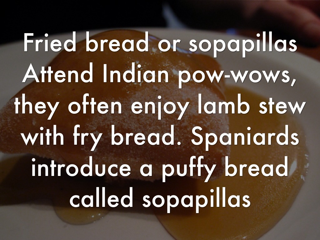 Attend Indian pow-wows, they often enjoy lamb stew with fry bread. Spaniards introduce a puffy bread called sopapillas