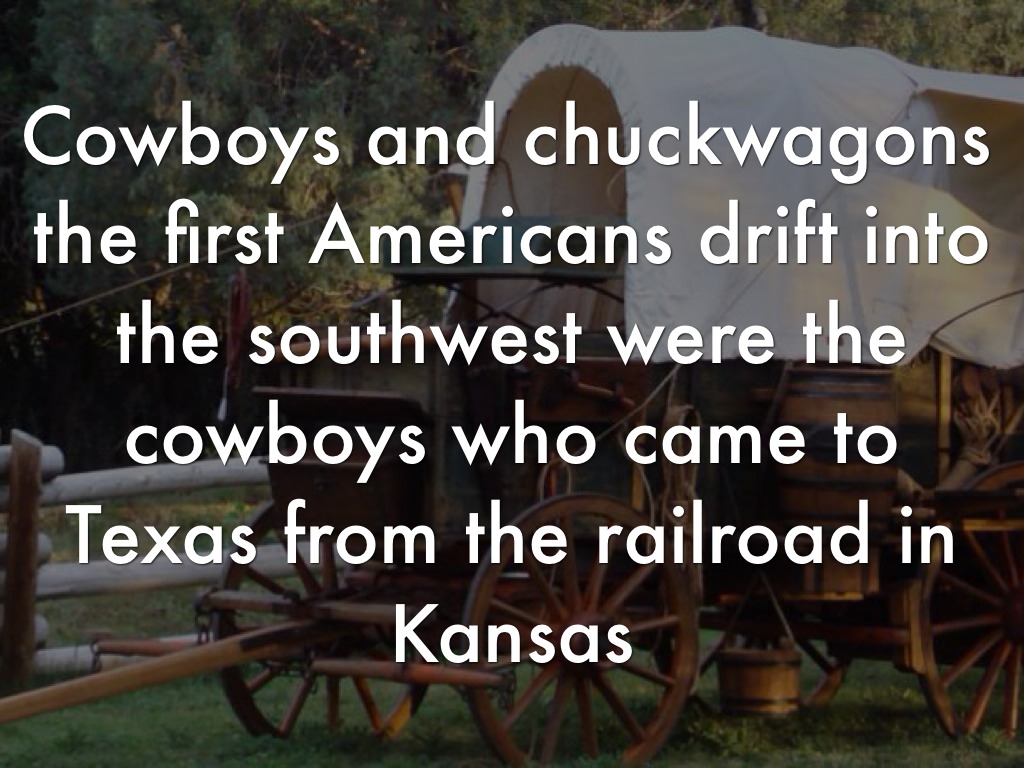 Cowboys and chuckwagons the first Americans drift into the southwest were the cowboys who came to Texas from the railroad in Kansas