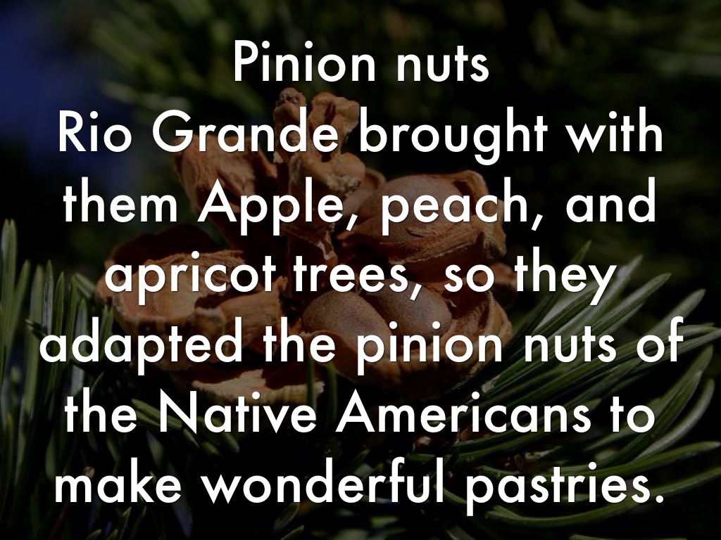 Rio Grande brought with them Apple, peach, and apricot trees, so they adapted the pinion nuts of the Native Americans to make wonderful pastries.