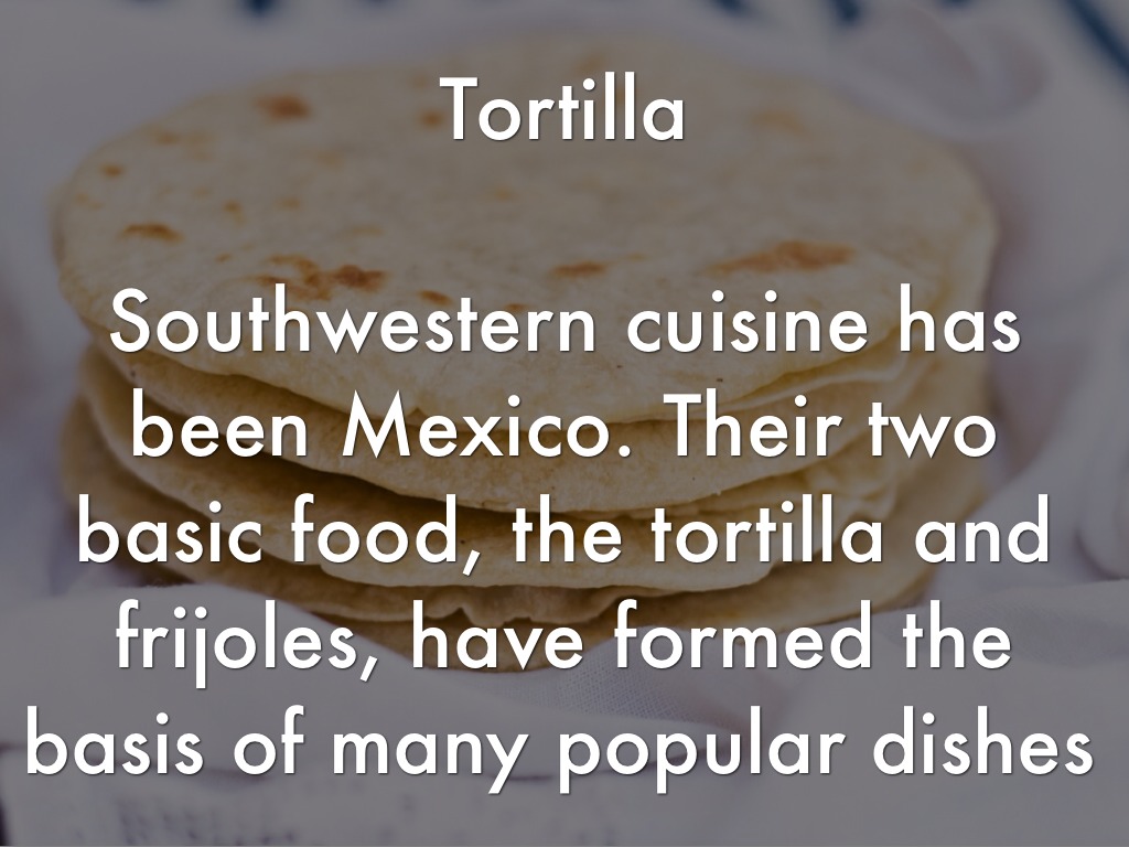 Southwestern cuisine has been Mexico. Their two basic food, the tortilla and frijoles, have formed the basis of many popular dishes
