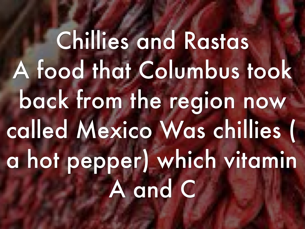 A food that Columbus took back from the region now called Mexico Was chillies ( a hot pepper) which vitamin A and C