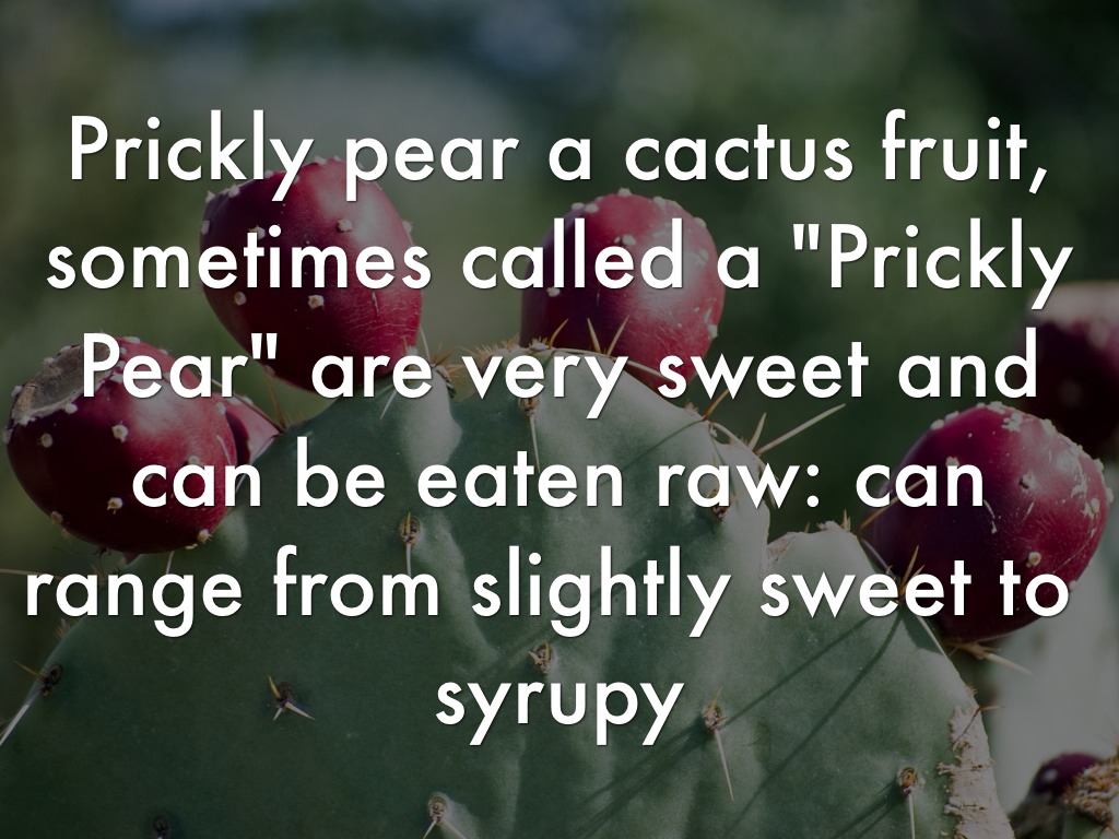 Prickly pear a cactus fruit, sometimes called a "Prickly Pear" are very sweet and can be eaten raw: can range from slightly sweet to syrupy