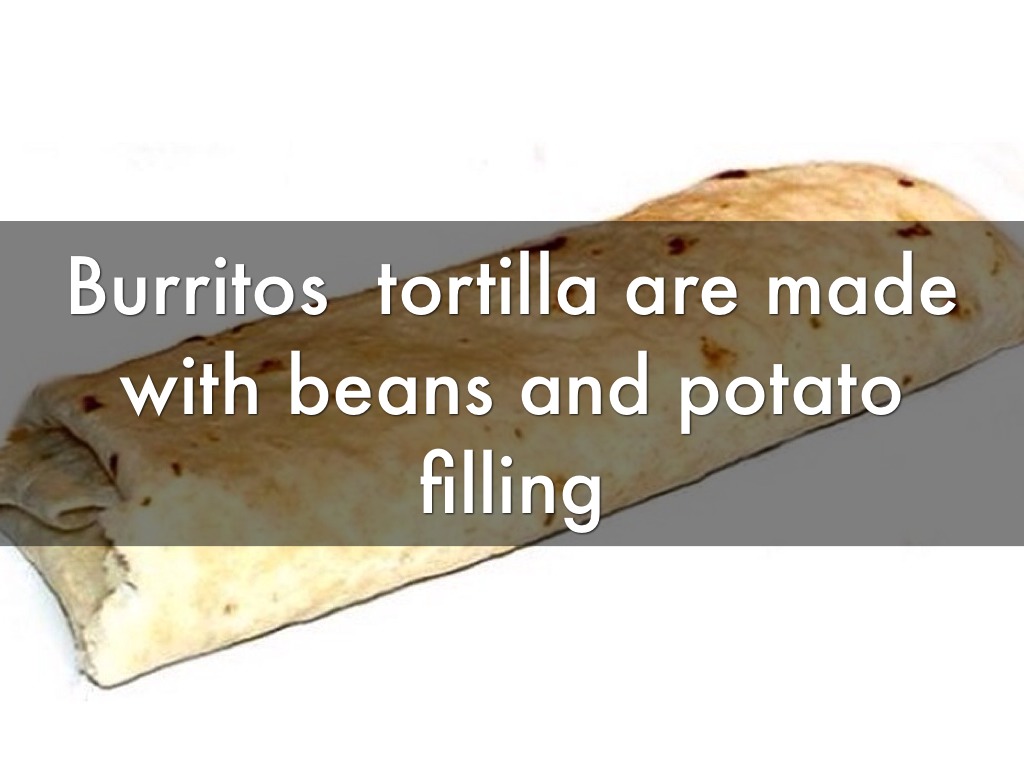 Burritos tortilla are made with beans and potato filling