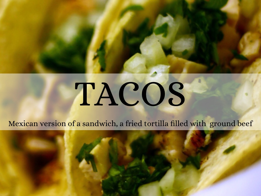 Mexican version of a sandwich, a fried tortilla filled with ground beef