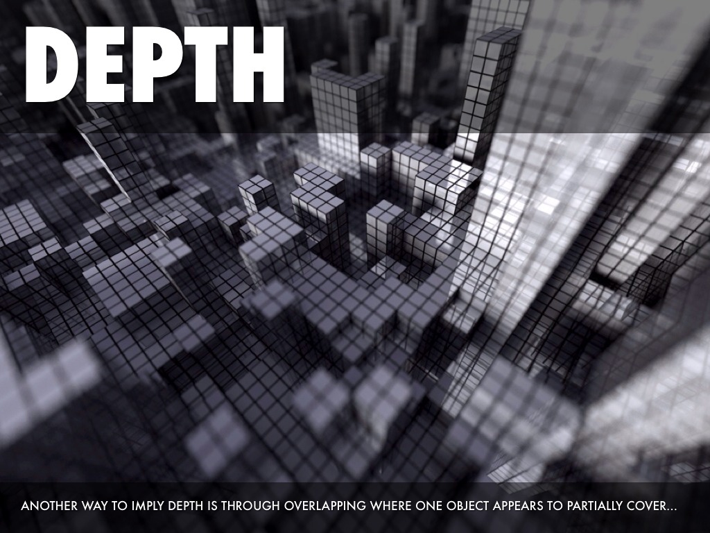 Another way to imply depth is through overlapping where one object appears to partially cover another.