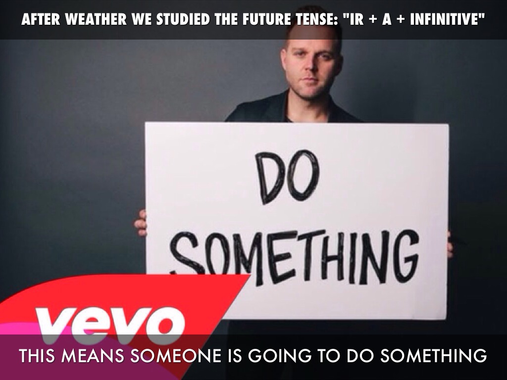 AFTER WEATHER WE STUDIED THE FUTURE TENSE: "IR + A + INFINITIVE"