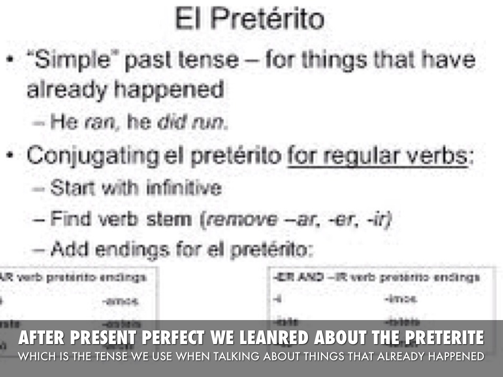 AFTER PRESENT PERFECT WE LEANRED ABOUT THE PRETERITE