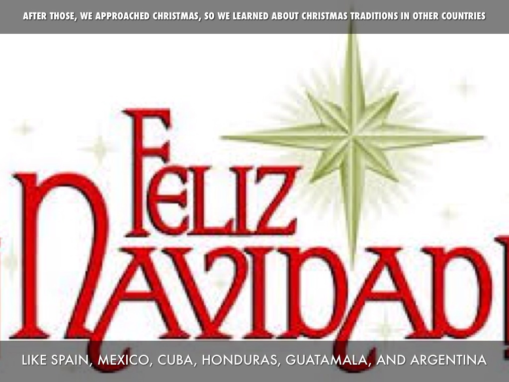 AFTER THOSE, WE APPROACHED CHRISTMAS, SO WE LEARNED ABOUT CHRISTMAS TRADITIONS IN OTHER COUNTRIES